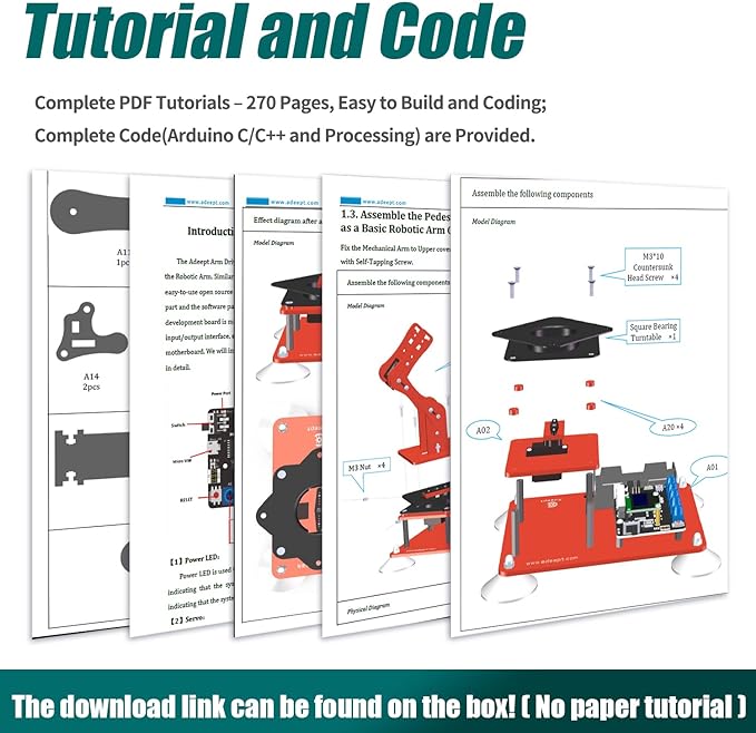 - 【Learn Programming & Robotics】Developed for robot lovers, the 5-DOF robotic arm kit is compatible with Arduino IDE. Detailed manual(PDF) and a variety of interesting Arduino code routines are provided.