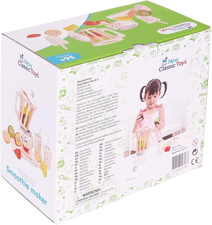 New Classic Toys Wooden Smoothie Set - Pretend Play Toy for Kids Cooking Simulation Educational Toys and Color Perception Toy for Preschool Age Toddlers Boys Girls