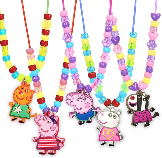 - Complete Set: This jewelry making kit includes all craft supplies needed to make 5 different necklaces that star Peppa Pig, George Pig, Candy Cat, Suzy Sheep, and Zoe Zebra.