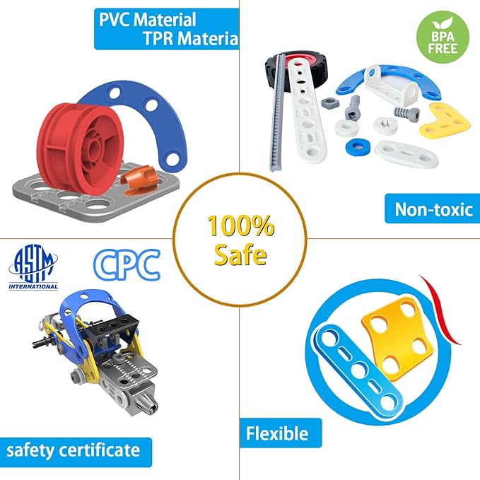- Safe for Kids:Engineering kit has smooth edges,non-toxic,meets quality testing standards,with ASTM,CPC certification.All parts are placed in a box,which is easy to store,will not lose parts,and will not make the home very messy