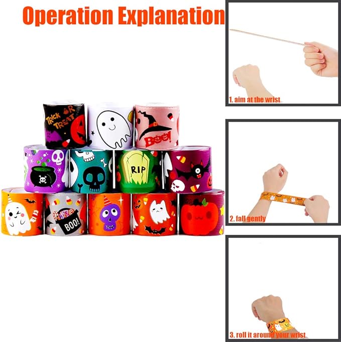 - Size: Each slap bracelet is 21cm x 3cm (8.3 x 1.2 inches), on Halloween party, enough quantity meet kids to play with their friends and make them have a deep impression