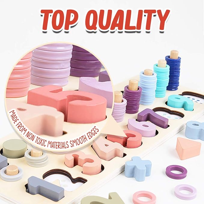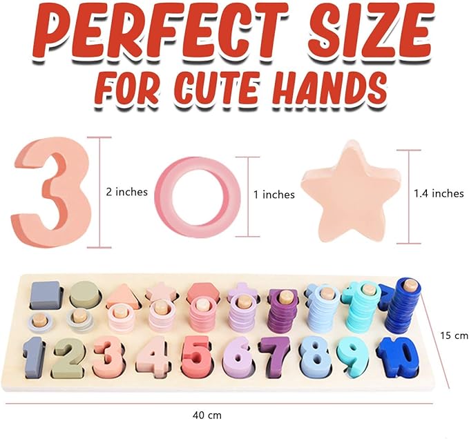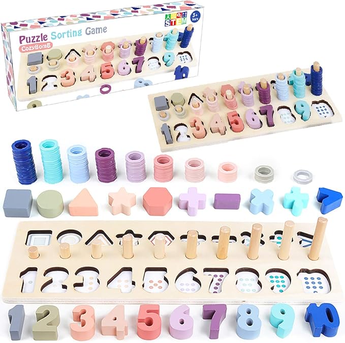 - 🌈【3-in-1 SET】Best Montessori , earning & education toys Learn numbers with blocks, shapes, colors, sorting and stacking, and basic math with this awesome wooden puzzle board. The best preschool educational toy for toddlers!