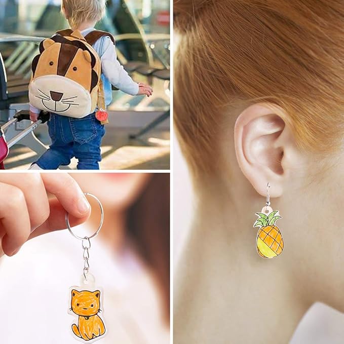 - Great DIY Kit for Craft Lovers: Good Kit for children who enjoys doing variety of art jobs. They can use this shrink art kit to diy pendants, earrings, keychains, jewelry, buttons, gift tags, bookmarks , etc