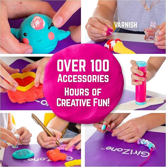 - GirlZone Air Dry Clay Ultimate Craft Kit, Over 100 Piece Kids Modeling Clay Set, Air Dry Clay for Kids with No Baking Required, Arts and Crafts for Girls Age 3+ (Regular Size)