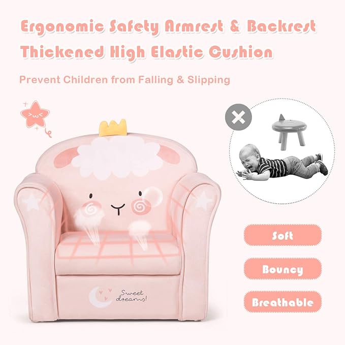 Costzon Kids Couch, Children's Sofa Armrest Chair with Pattern, Toddler Furniture w/Sturdy Wood Construction, Preschool, Lightweight Kids Couch Sofa Chair for Aged 1-5 Boys & Girls Gifts, Lamb
