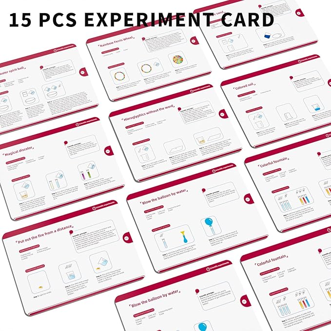 - Professional Scientific Guidance Card - Contains 15 colorful science experiment instruction cards (both sides), clearly showing the steps and scientific principles of 30 experiments, guiding your little scientist from simple to challenging step by step, enhancing the confidence of children.