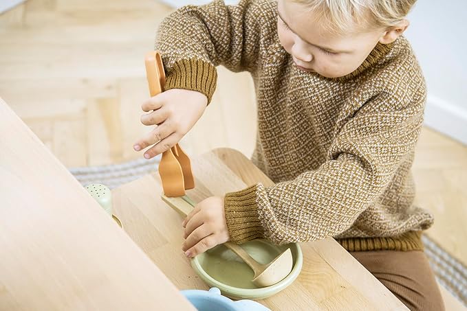 Dantoy: BIO Kitchen Set - 12 Piece Food Playset, Pretend Play Cooking, Realistic Kitchen Toys, Utensils, Recycled Plastic, Kids & Toddlers Ages 2+