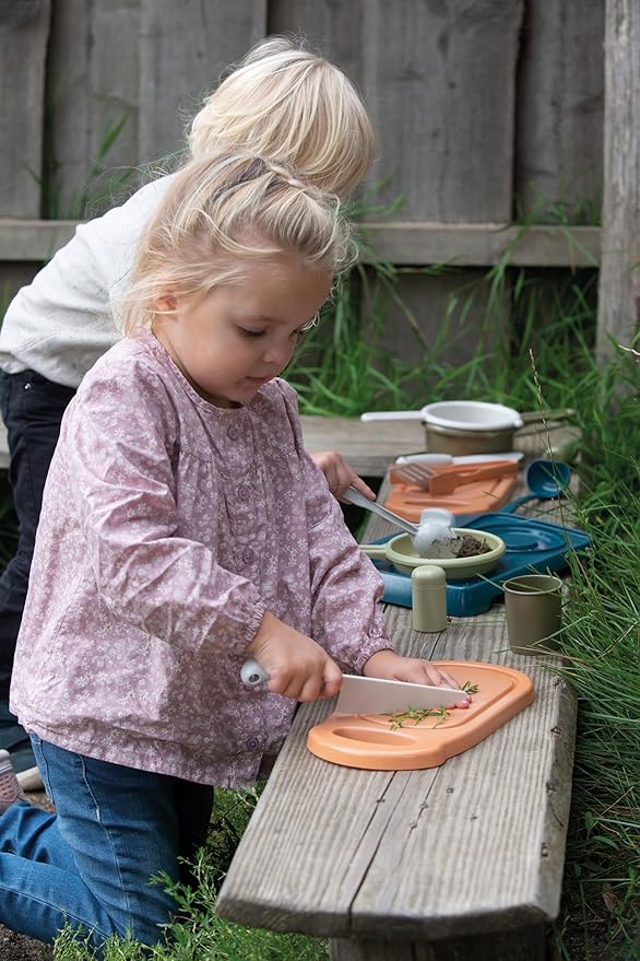 - KITCHEN & FOOD 12 PIECE PLAYSET: Cook up a storm! Provides opportunities for imaginative play & sensory exploration. Set Includes: Strainer, Sauce pan, Fry pan, Ladle, Knife, Spatula (2), Tongs, Can with lid, Salt and Pepper Shakers.