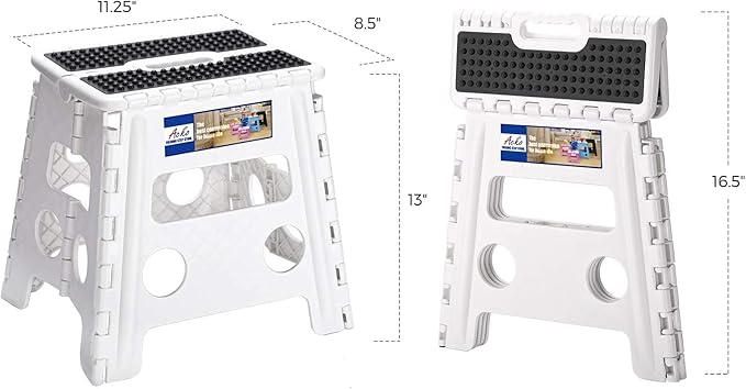 ACKO Folding Step Stool - 13" Height Premium Heavy Duty Step Stools for Adults and Kids, Upgrade Step Stool Kitchen Garden Bathroom Stepping Stool (White)