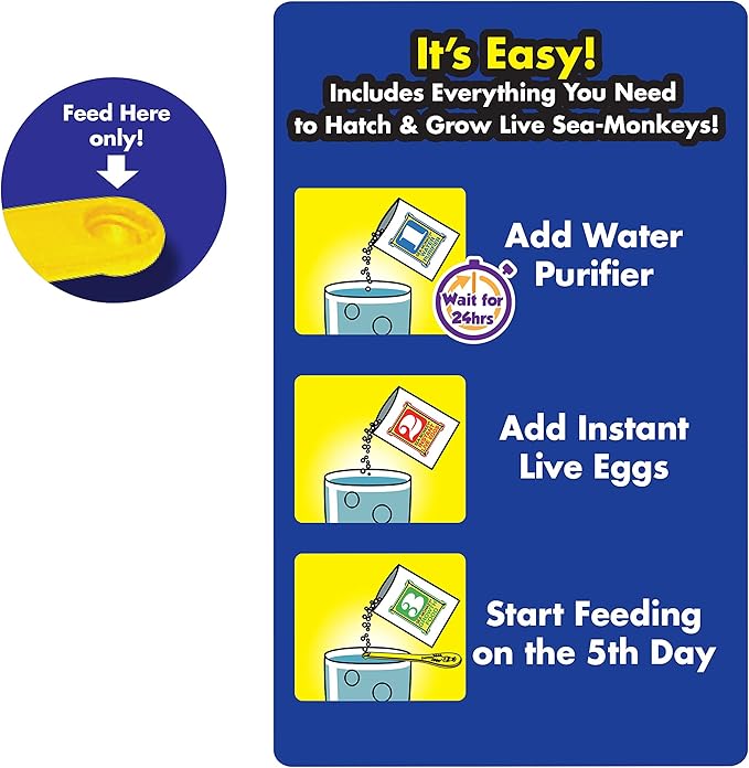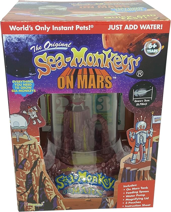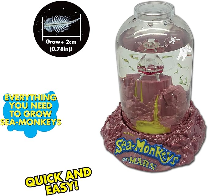 - ON MARS CONTENTS - Each Sea Monkeys On Mars includes amazing space themed aquarium tank, water purifier, instant life eggs, food, aquarium and feeding spoon. Everything you need to top up your aquarium or start a new one. Just add water!