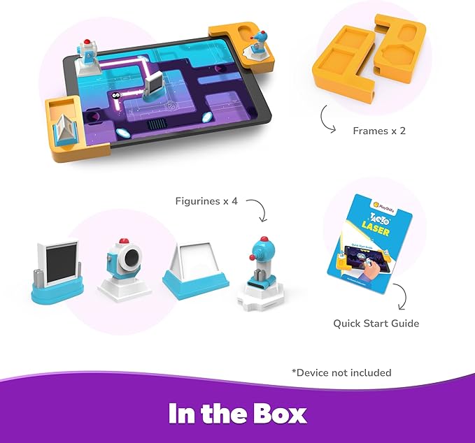 - IN THE BOX - 2 frames, 4 game pieces (mirror, prism, flashlight, laser). Fix frames on your tablet and let the adventure begin!