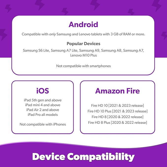 - COMPATIBLE DEVICES: iPad 5th gen & above, Android tablets (7"" and above, 2GB RAM), Fire HD 10 - 2021. Download the free Tacto app!