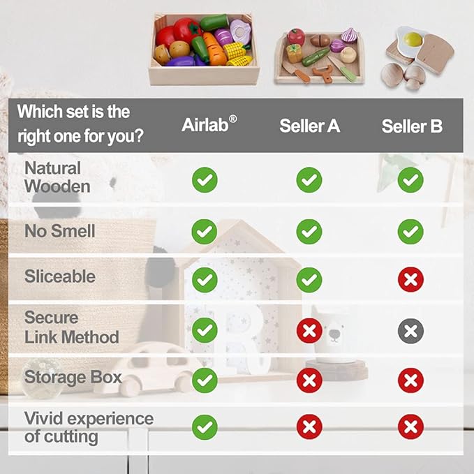 - Premium quality and Safety: The whole wooden play food is made from renewable rubber wood and colored with water-based dyes. It comes apart and sticks together with nylon buckles, and has a "crunch" sound while kids cut the food toy, which can bring a realistic feeling to the kids