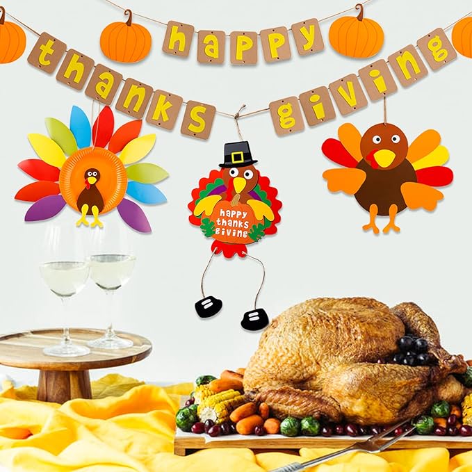 YOMIQIU Thanksgiving Turkey Crafts Kits, DIY Festive Fall Thanksgiving Party Hanging Sign Decor(6 Sets), Thanksgiving Crafts for Kids and Adults at Home Party Decoration School Activities