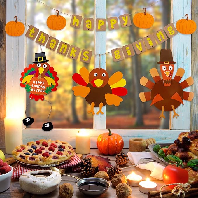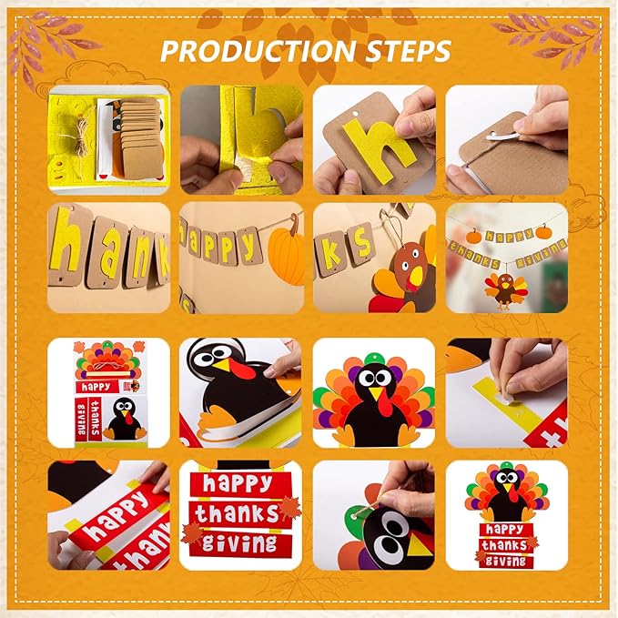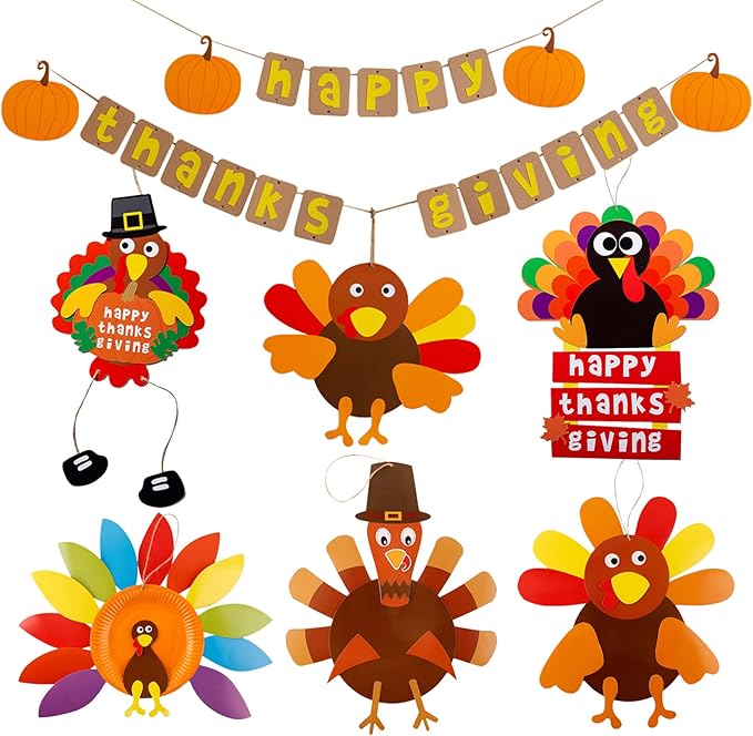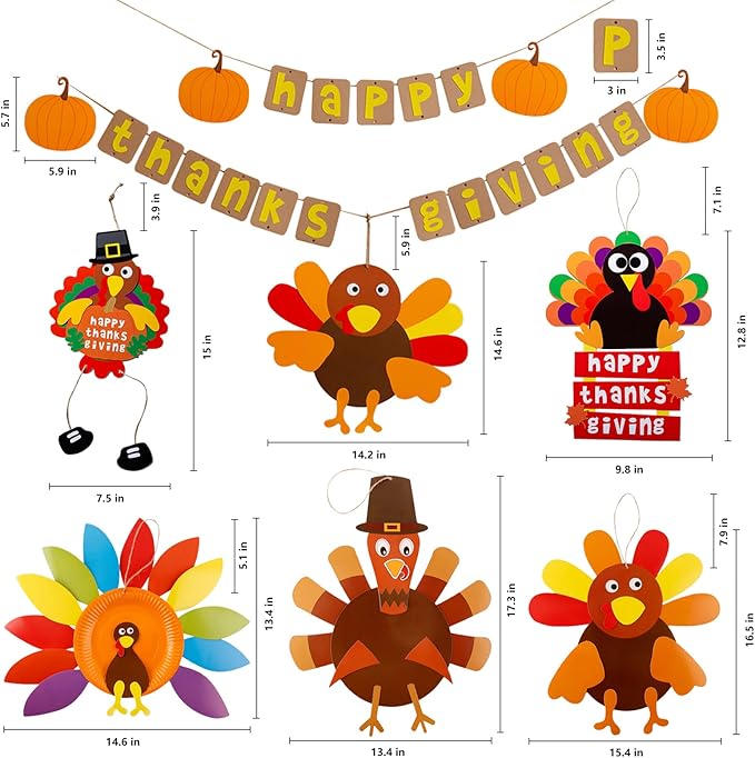 - 【Package contents】This package contains 6 sets of thanksgiving crafts for kids with different designs,and 1 Happy Thanksgiving bunting garland banner which can meet your home festive decoration needs at thanksgiving party.