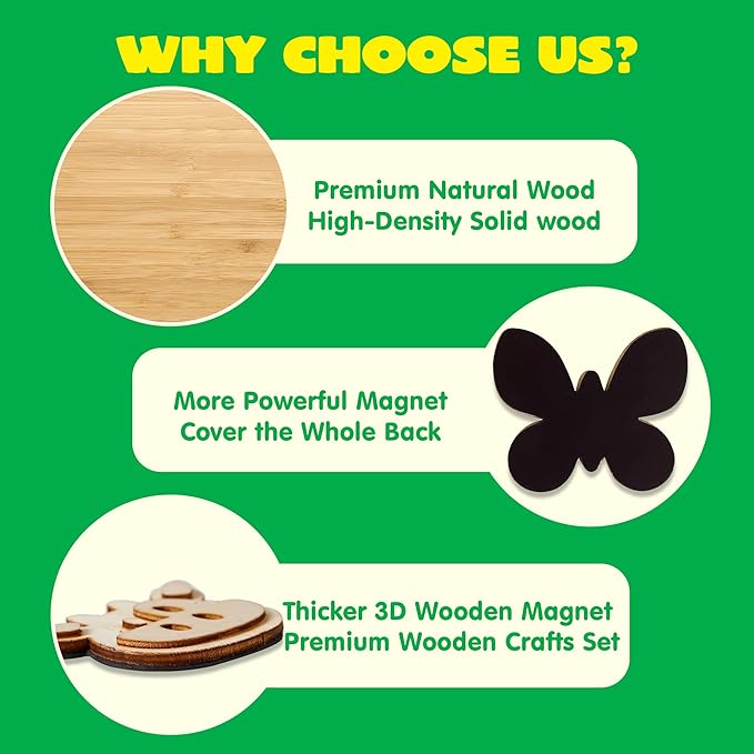 • UNIQUE DESIGN & EASY TO USE. Our 12 pieces of paint your own arts and crafts kit will unleash your kid's creativity. Your kids will learn how to mix paints and express themselves through decorating art by making wooden crafts magnets.