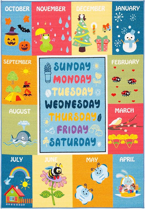 SAFAVIEH Kids Playhouse Collection Area Rug - 5'5" x 7'7", Blue & Green, Non-Shedding Machine Washable & Slip Resistant Ideal for High Traffic Areas for Boys & Girls in Playroom, Bedroom (KPH224M)