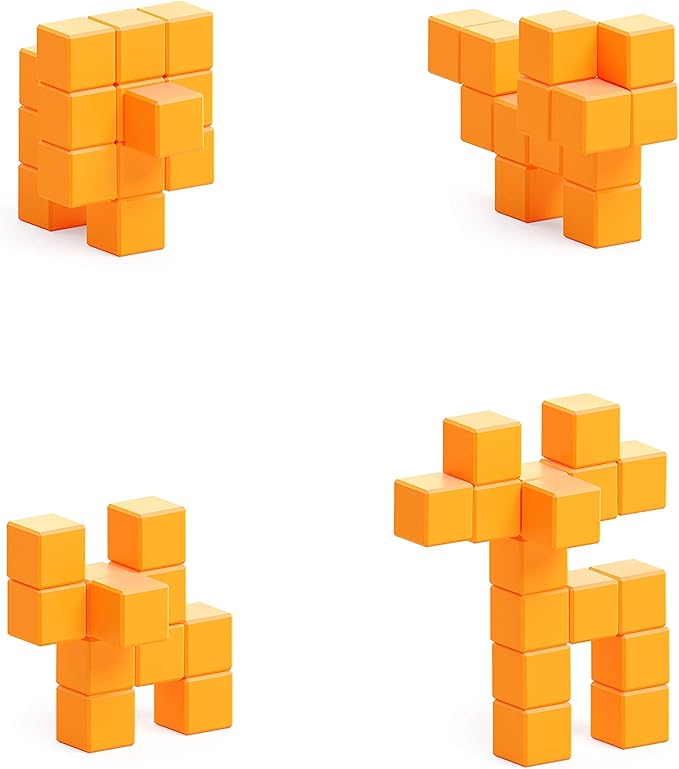 PIXIO-16 Orange Color Series Magnetic Blocks Building Set 16pcs with Free App, Stress Relief Building Blocks, Magnets for Kids, Pixel Art Desk Toy, Fidget Toys