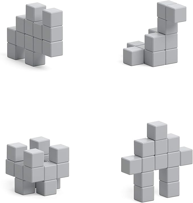 PIXIO-16 Grey Color Series Magnetic Blocks Building Set 16pcs with Free App, Stress Relief Building Blocks, Magnets for Kids, Pixel Art Desk Toy, Fidget Toys