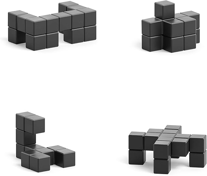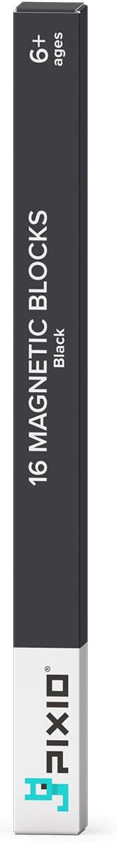 PIXIO-16 Black Color Series Magnetic Blocks Building Set 16pcs with Free App, Stress Relief Building Blocks, Magnets for Kids, Pixel Art Desk Toy, Fidget Toys