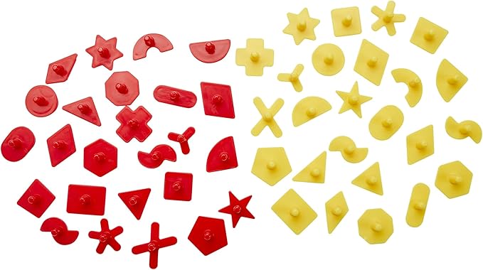 - CHOOSE A COLOR: The game comes with 25 red and 25 yellow shapes, and kids can have fun competing to put the most pieces in the spots on the tray before the timer runs out