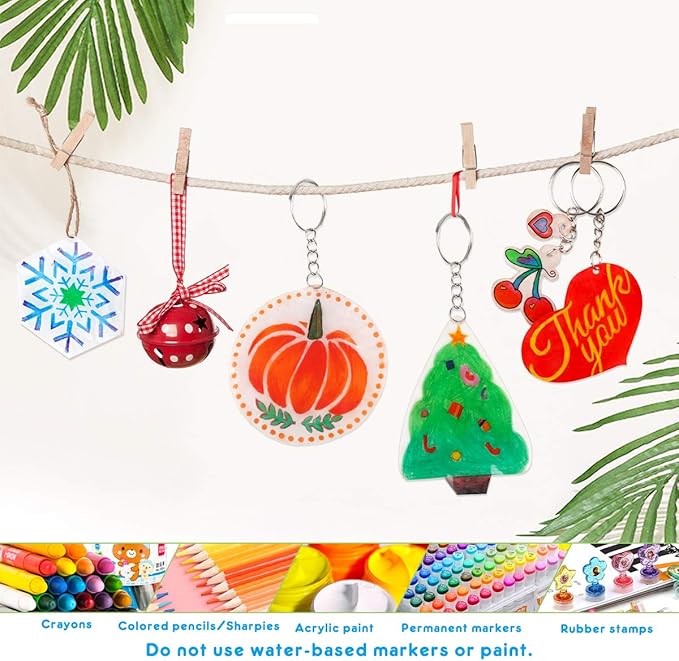 - Endless DIY Project: Cute, Fun, Creative shrink dink sheets. Suitable for creative art classes, DIY crafts, etc. It is also a great choice for making charms, keychains, earrings, jewelry, ornaments or any shape you like. There are tons of ways the kids can show off their skills. A good way to keep kids busy and improve children's hands-on ability