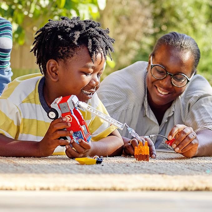 - Kids can lift the fire extinguisher ladder, store firefighter's tools in the miniature fire truck's storage compartment and create stories while saving the day