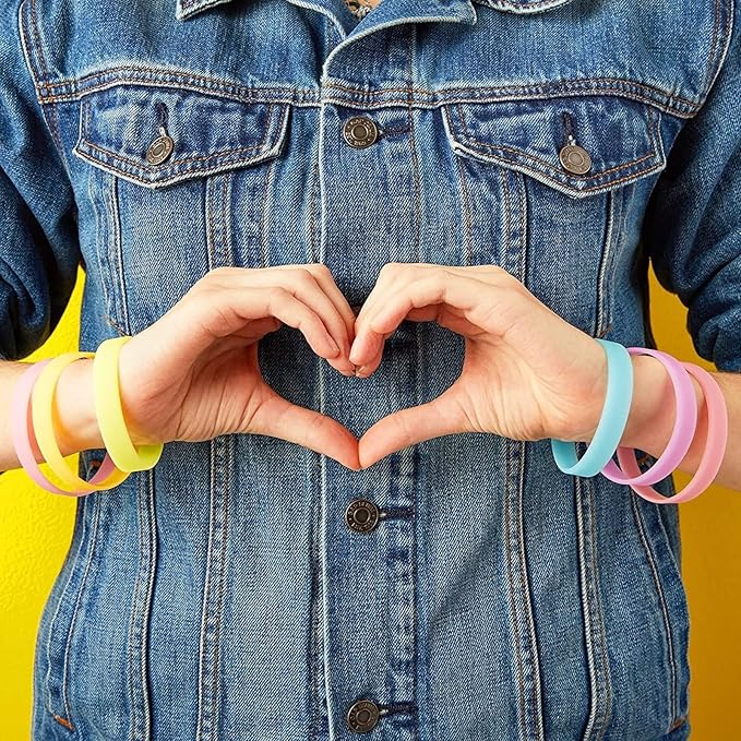 - Silicone Bracelet Set: Create a perfectly coordinated theme for an upcoming birthday party with these rubber bracelets that feature fun pastel colors and a blank design