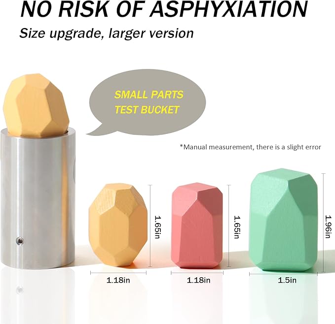• SKILL DEVELOPING: The stone blocks have many flat cut surfaces so the stones can be stacked and kids can stack different shapes of stones to the highest. Unlike regular building blocks, this wooden stone balancing and stacking game is a better way to stimulate a child's sense of challenge and develop their hands-on skills, promote creativity, resilience and persistence and to strengthen fine motor skills, visual-spatial skills, color recognition and thus training logical thinking.