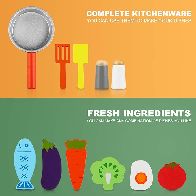 TOY Life Wooden Kitchen Sets for Kids, Wooden Play Food, Wooden Food Toys, Wooden Kitchen Toys, Wooden Play Set, Wooden Puzzles for Toddlers, Toy Cooking Set for Toddlers
