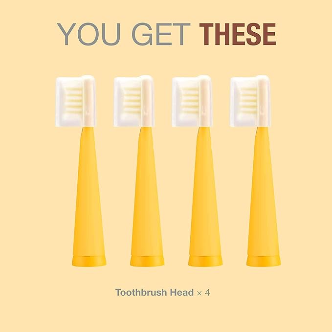 Vekkia Bear Kids Electric Toothbrush Replacement Heads - 7X More Plaque Removal, End-Rounded 3D Curved Soft Bristles, Comfortable & Efficient Clean Teeth, Perfect for Kid Small Mouth, Yelow (4 Pack)