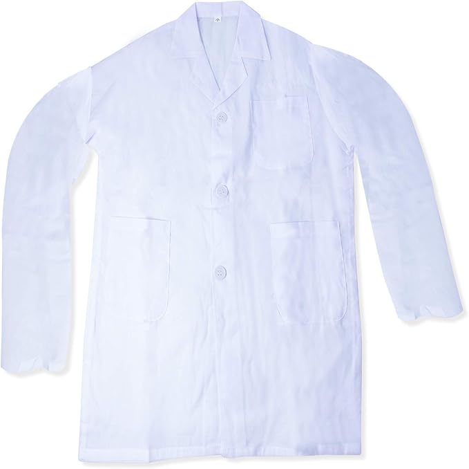 • High quality washable material kids science lab coat for dressing up as a scientist, made of durable polyester and cotton material. Long sleeves, pockets included and three buttons. Ideal for kids dress up,costume, school career party and other activities