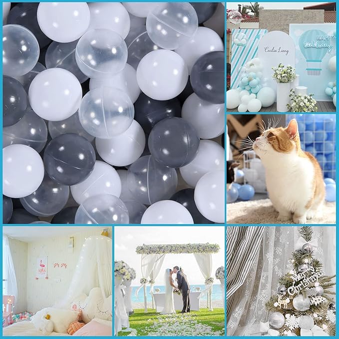 - PACKING- 100 pcs pack for home use. Great for filling any play tent, playpen, kiddie pool, baby playhouse, play yard, ball pit, and bounce house. Great photo prop for dogs, cats, pets as well. Can use it at parties, backyard, parks, playgrounds, day care, school, carnivals.