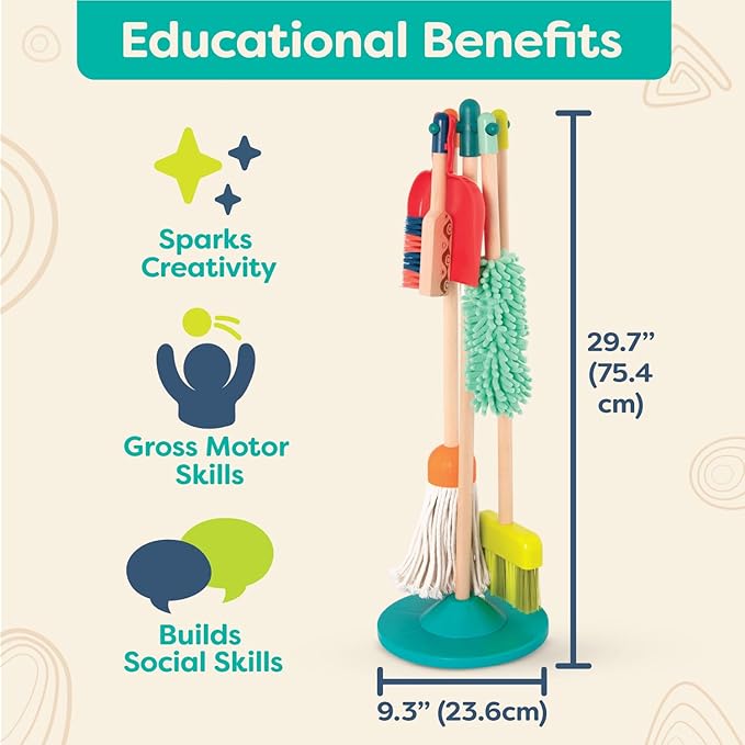 B. toys- Clean n' Play- Pretend Play Wooden Cleaning Set- Playset for Toddlers – Broom, Dustpan, Brush- 2 Years +