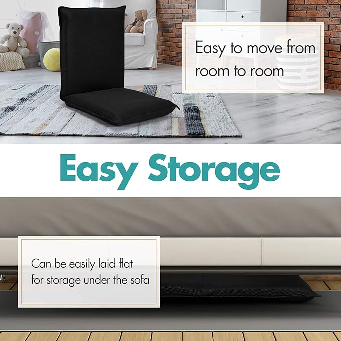 S AFSTAR Adjustable Floor Chair, Cushioned Lounger Recliner with 6-Position Comfortable Back Support & Thick Padded, Lazy Sofa Floor Gaming Chair, Floor Seat for Gaming Reading Meditation (Black)