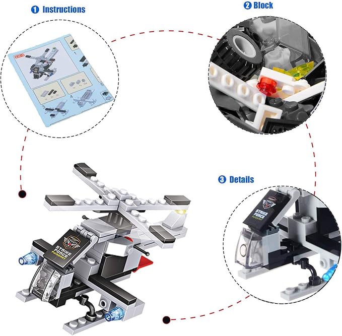- 8-IN-1 NAVAL WARFARE MODELS: One amazing kit builds 8 different combat models! Aircraft carrier, jet fighter, helicopter, tanks, missile launcher, submarine & more. Each style can have two different looks for double the FUN!