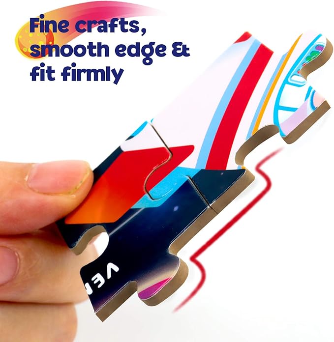 - Safe and Durable: Product made with FSC-certified. The space puzzles are made of 3mm thick recycled cardboard, safe and no special smell. Each piece of children puzzles are carefully cut, with smooth edges. Finished puzzle measures 15" x 10".