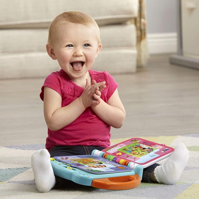 - The light-up star music button plays two bilingual learning songs; use the carrying handle to bring the book on the go
