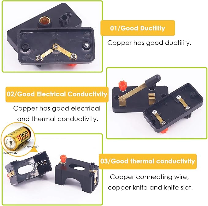 • 🚥 Applications Scene --- These ligh weight physics experiment equipments are perfect for physics demos and projects in school such as teaching basic principles of electricity & how a simple circuit works. It is also suitable for kids to practice & DIY fruit battery at home, which is good for keeping children’s creativity & enhancing intelligence.