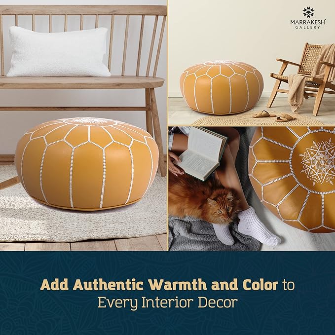 - Add Authentic Arabic Style, Coziness, and Color - Spruce up the space with a leather ottoman pouf designed to hold 10 - 12lbs., that adds some boho chic charm to the living room decor. It's the perfect furniture addition for cozying up with a book, as a foot rest, or an ottoman cover