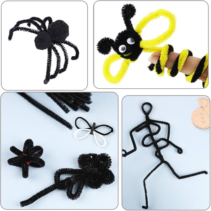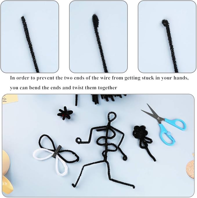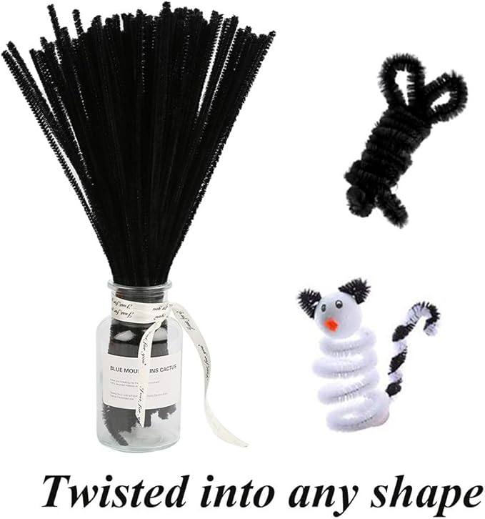 - What Can You Get: 100 pieces of pipe cleaner craft black chenille stems, meet your crafting needs, you can make it into many and beautiful handicrafts. Come and make various beautiful decorations, crafts for your Christmas party!