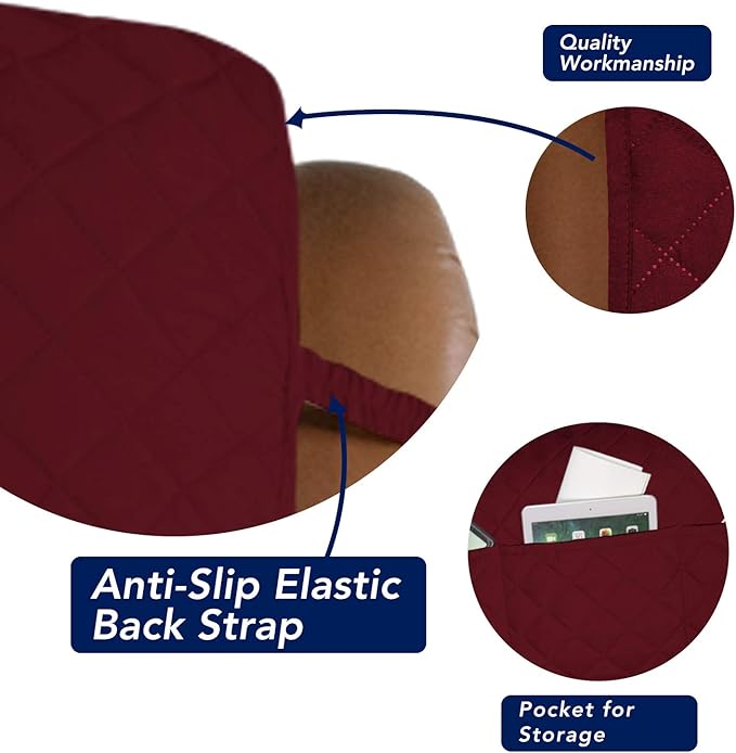 PureFit Reversible Quilted Sofa Cover, Water Resistant Slipcover Furniture Protector, Washable Couch Cover with Non Slip and Elastic Straps for Kids, Dogs, Pets (Oversized Recliner, Red/Ivory)