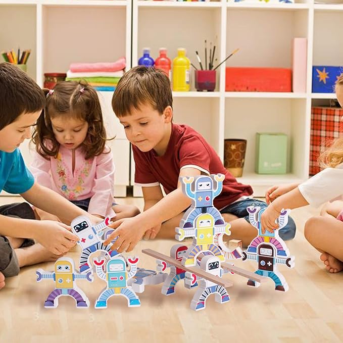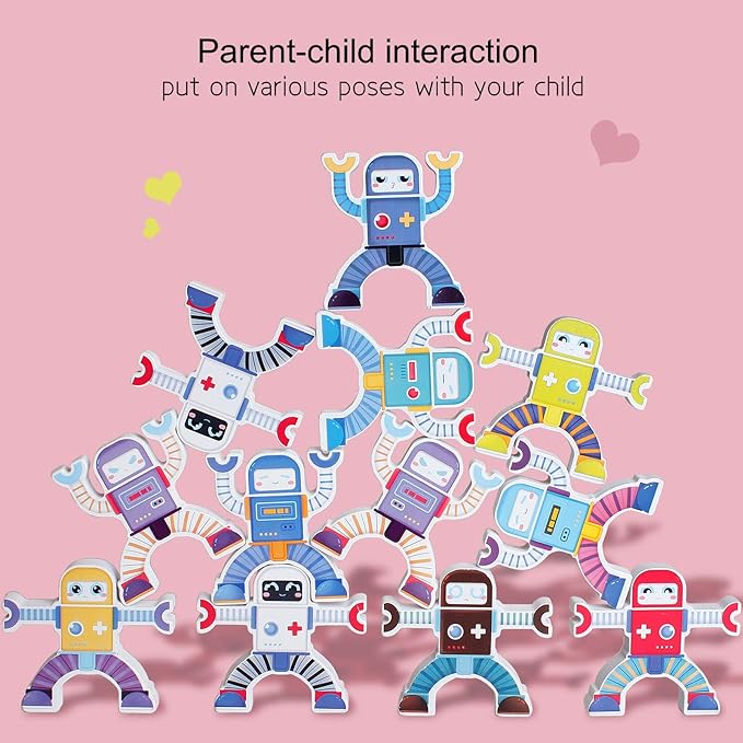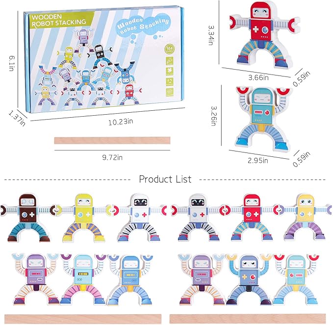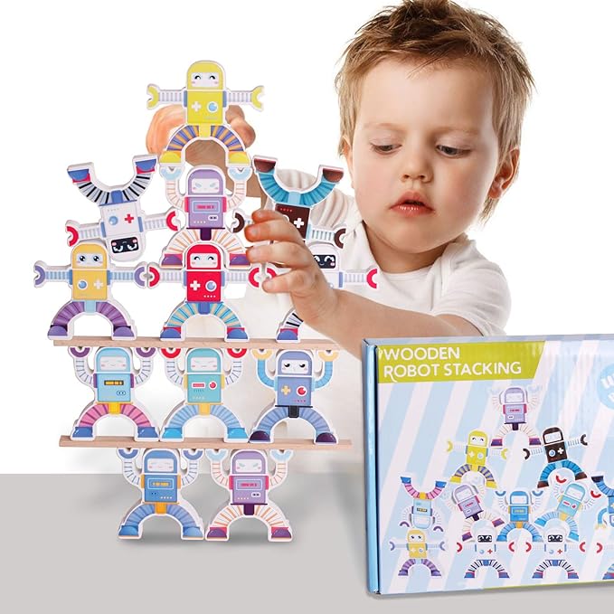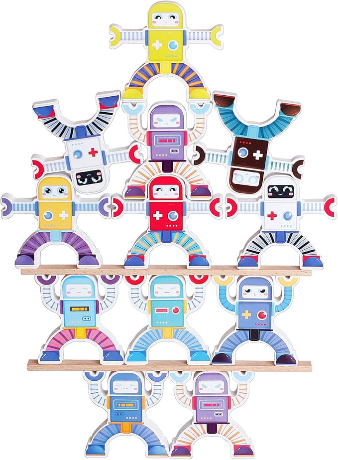 - SAFE MATERIAL: Robot balance building blocks are made of high quality wood and coated with eco-friendly paint. It is natural, safe, non-toxic and exquisitely crafted. Hand-polishing process ensures a smooth, burr-free surface for kid’s better play.