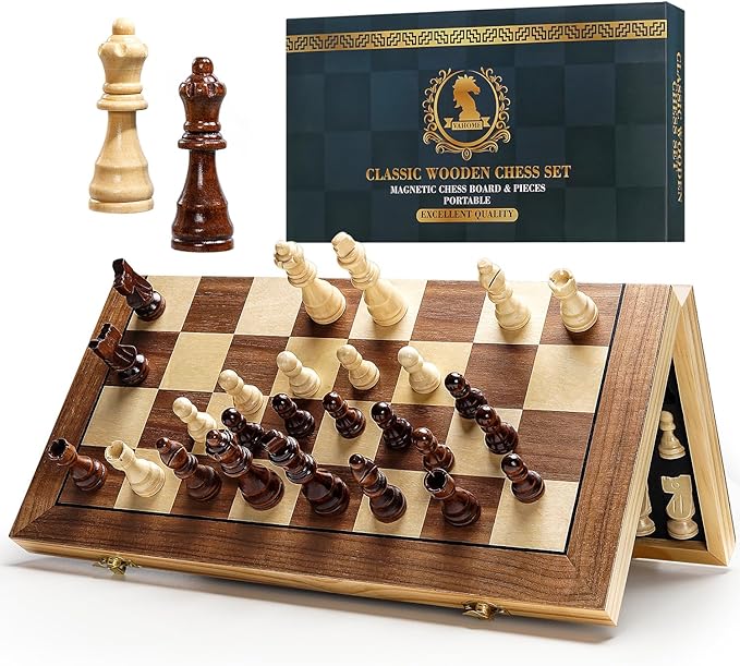 Magnetic Chess Board Set for Adults & Kids, 15" Wooden Folding Chess Boards, Handcrafted Portable Travel Chess Game with Pieces Storage Slots