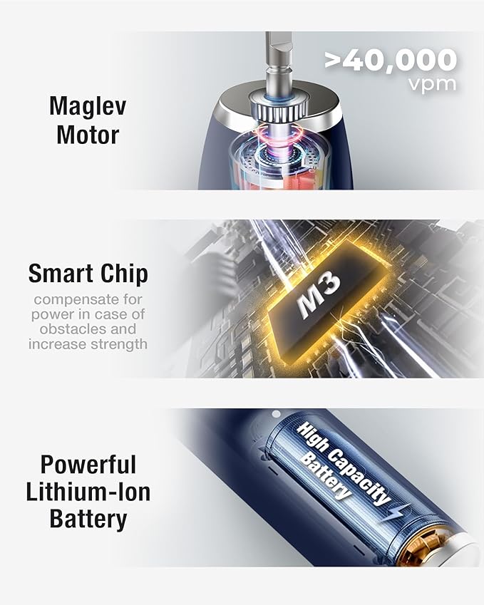 7AM2M Sonic Electric Toothbrush with 6 Brush Heads for Adults&Kids, One Charge for 120 Days, Wireless Fast Charge, 5 Modes, 40000VPM Powered Toothbrush, 2 Minutes Built in Smart Timer (Navy Blue)