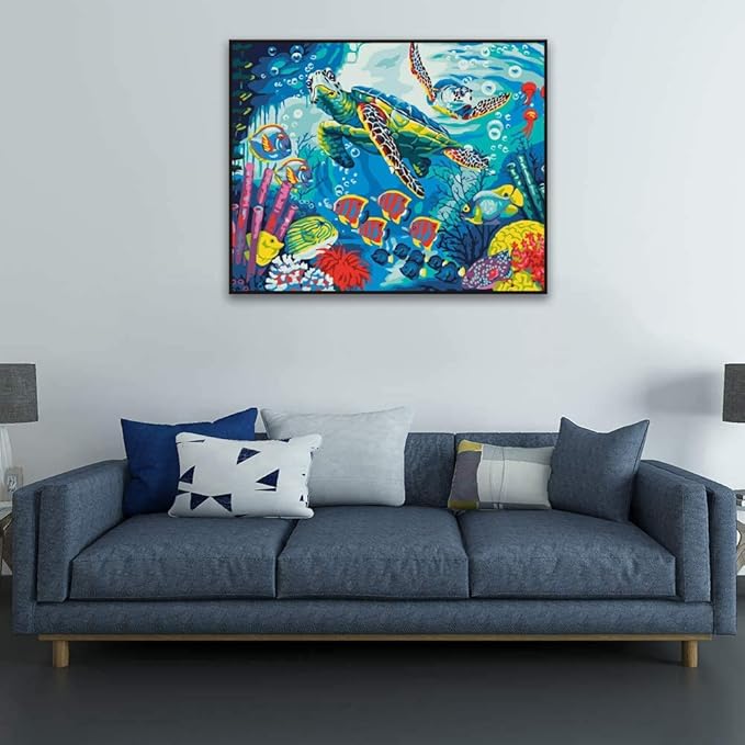 Hiolife Paint by Number Kits for Adults,Kids, Beginners, with Brushes and Acrylic Pigment, 20x16 Inch Tortoise - Frameless