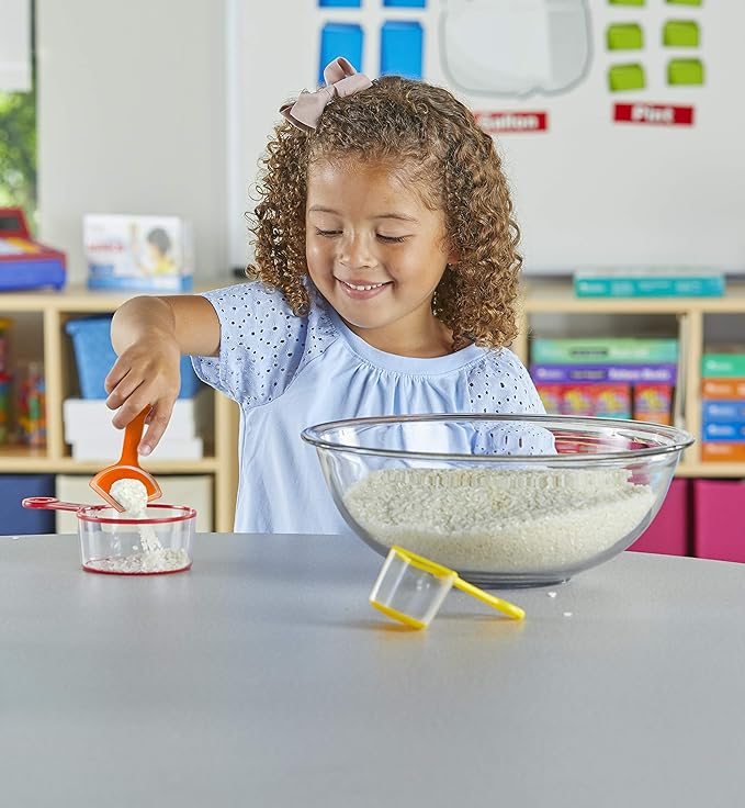- PART OF THE FRACTION TEACHING SYSTEM: Our Rainbow Measuring Cups match the same colors as the rest of our various types of fraction manipulatives, so kids continue to get more comfortable with different fraction sizes.