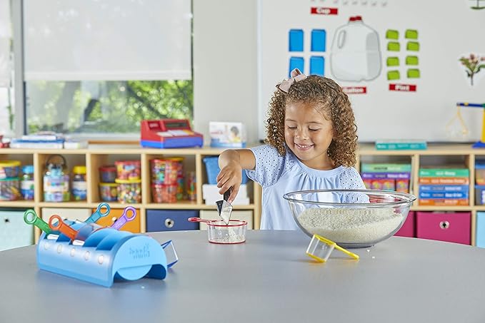 - PART OF THE FRACTION TEACHING SYSTEM: Our Rainbow Measuring Cups match the same colors as the rest of our various types of fraction manipulatives, so kids continue to get more comfortable with different fraction sizes.