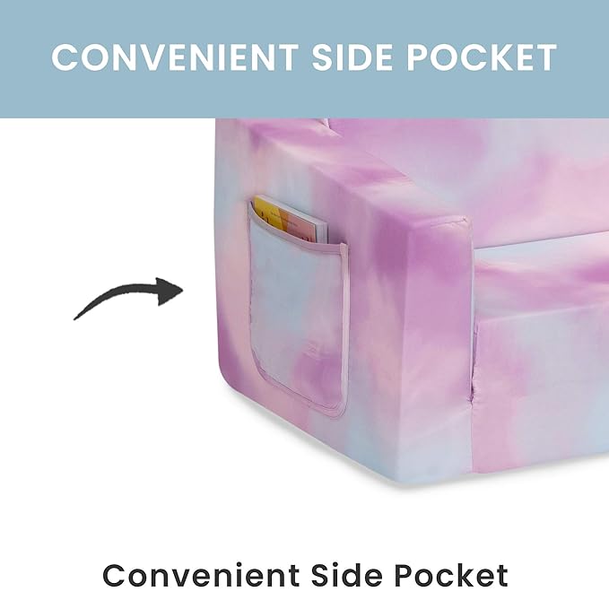 Delta Children Cozee 2-in-1 Extra Wide Convertible Sofa to Lounger-Comfy Flip Open Couch/Sleeper for Kids, Pink Tie Dye