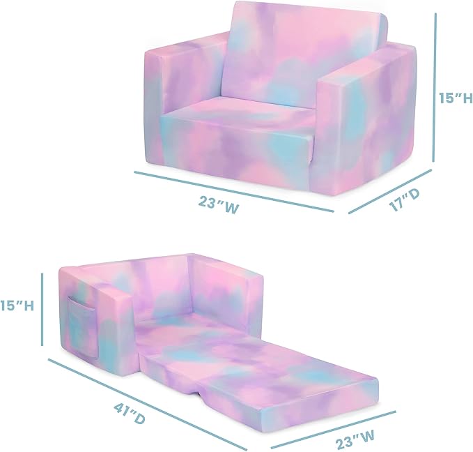 - Convertible 2-IN-1 Design: This flip-open chair converts to a lounger/sleeper| Ideal for reading, relaxing, playing or sleeping, your child will enjoy this couch with siblings/friends | Recommended for ages 18 months+ | Fits 1 to 2 small children